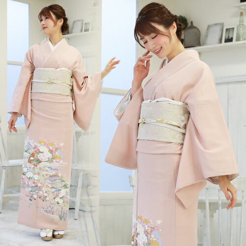 新入荷【レンタル】訪問着 17点 フルセット レンタル訪問着 h424 クリーム色 七宝 花柄 JAPANSTYLE ブランド Mサイズ【往復送料無料】袋帯 小物 セット レンタル着物 結婚式 お宮参り お茶会 入学式 卒業式 七五三 和装